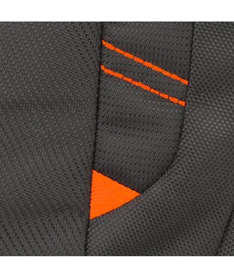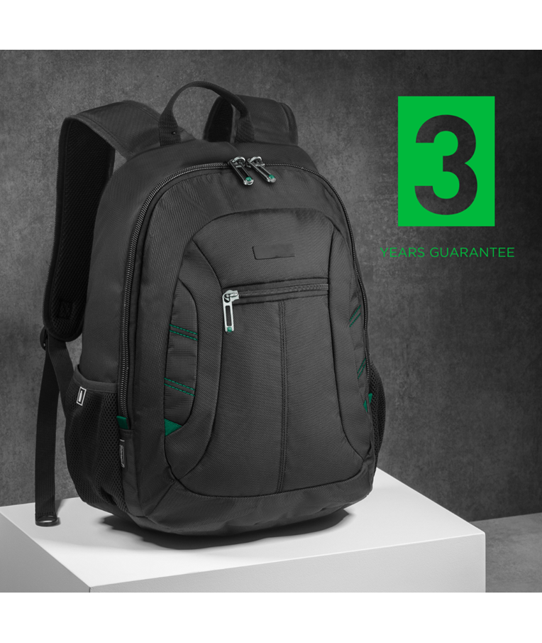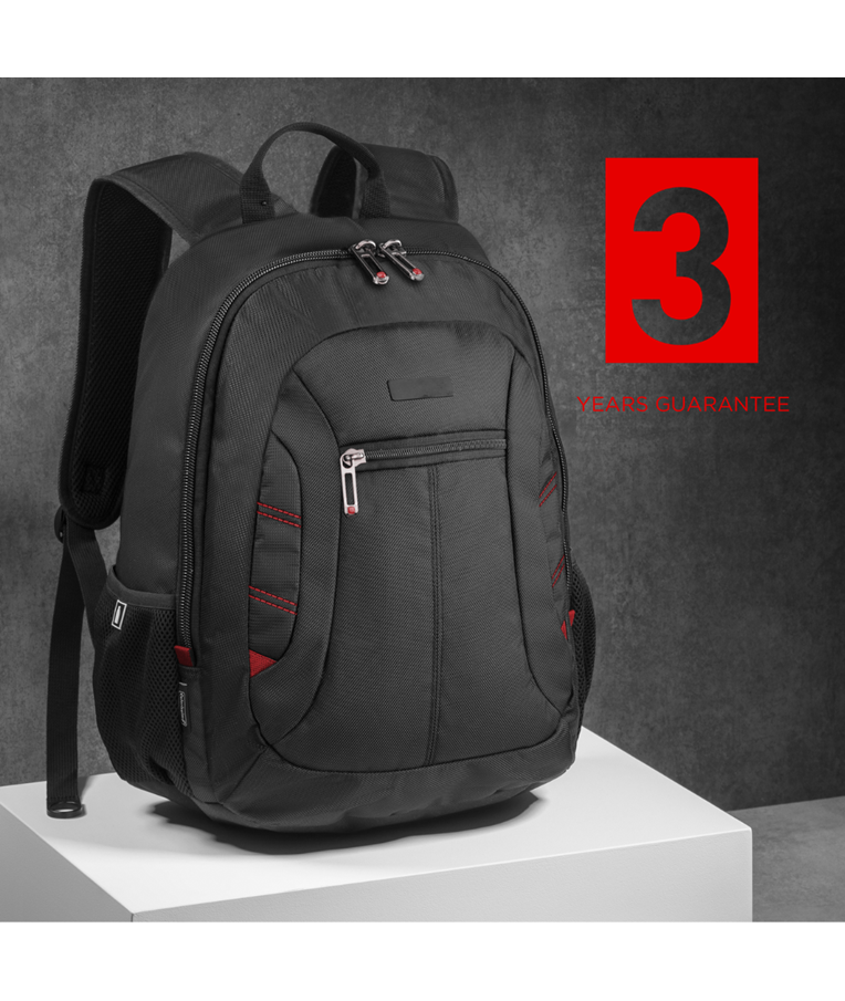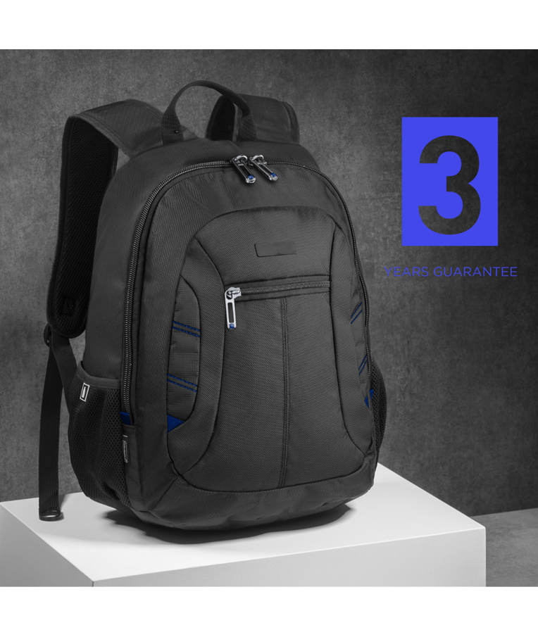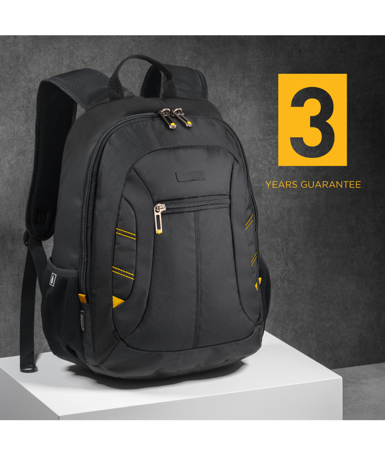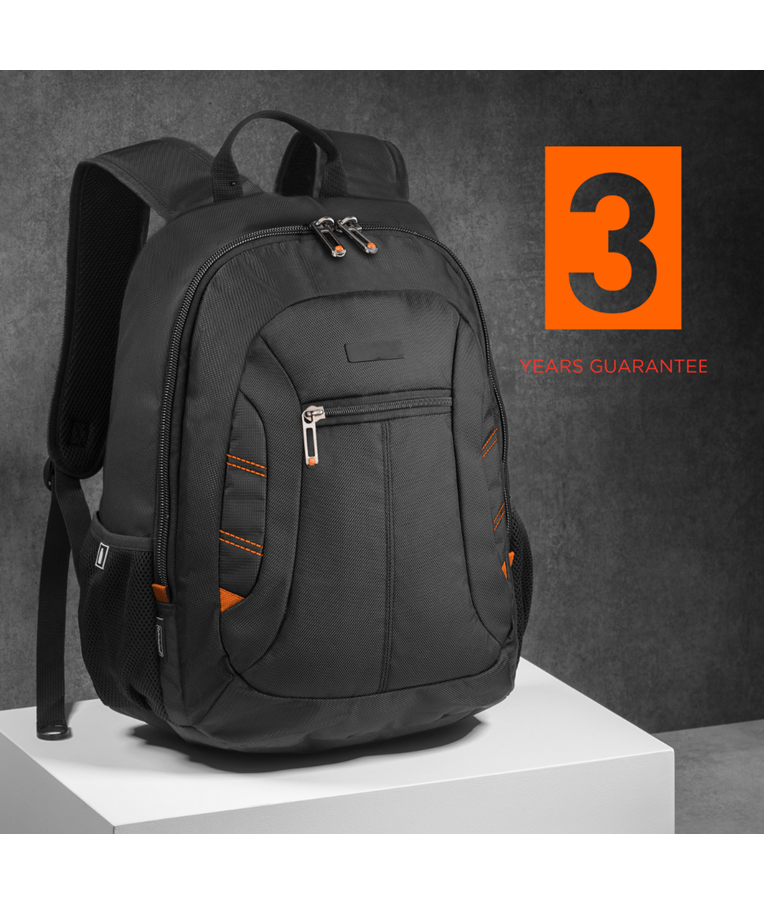 Light and roomy, it features one main compartment, equipped with a pocket for a 15” laptop, pockets for small business accessories and 2 side pockets. Additional reinforced back, reinforced braces, gun metal metal zippers and colourful stitching. Anodised metal plate perfect for labelling.