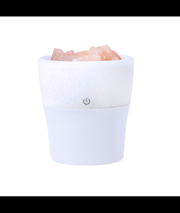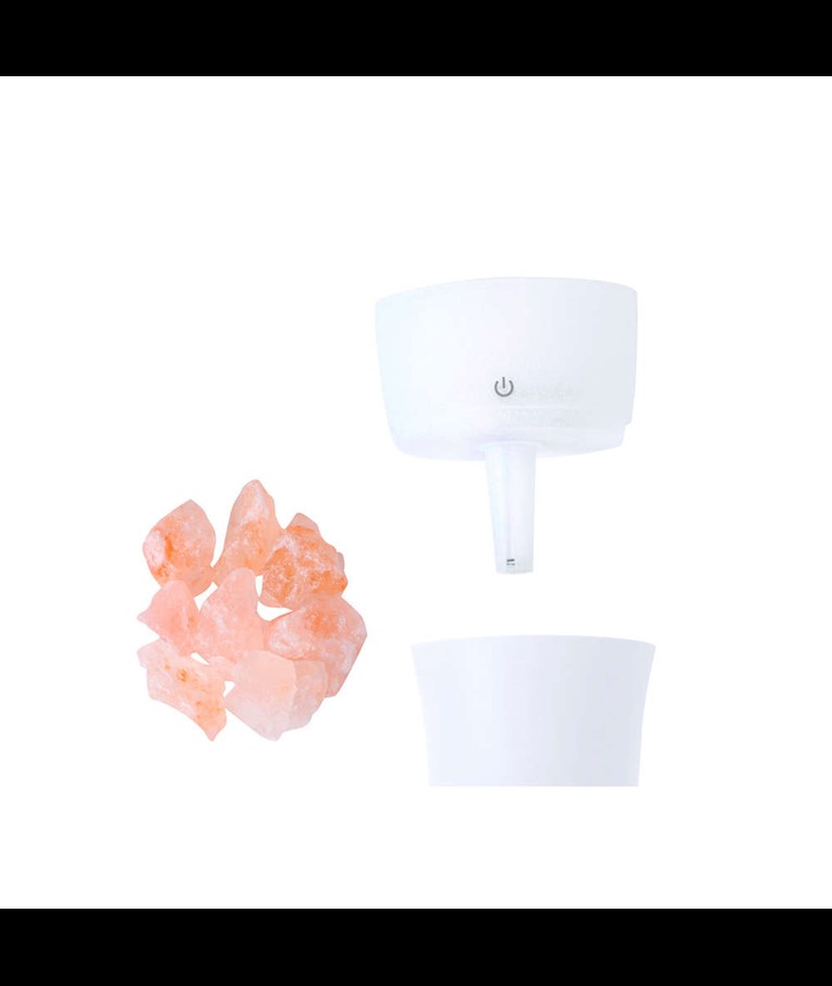 Elegant and decorative humidifier with integrated aromatic diffuser filled with Himalayan salt. With multicolour LED lights and continuous vaporisation. 150 ml tank, for use in rooms up to 25m2, and USB power cable. Including 10 ml of lavender scent and presented in a kraft design box.