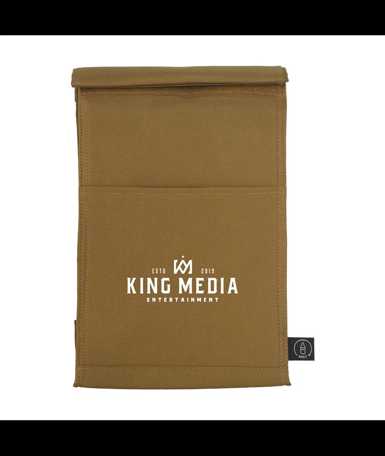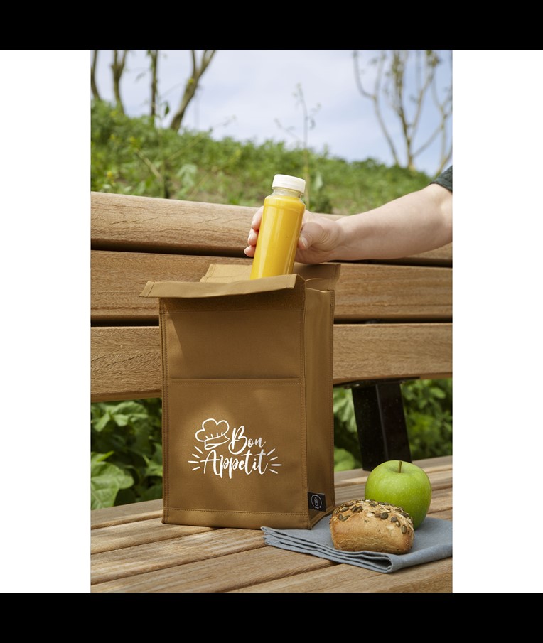 WoW! Roll-top lunch bag made from RPET 600D polyester. With a handy front pocket, a roll closure and Velcro and a carrying strap. This spacious lunch bag doubles as a cooler bag. The inside of the bag is lined with aluminium foil insulation to ensure that your lunch stays cooled and fresher for longer. This bag is a great replacement for daily plastic sandwich bags. This helps to eliminate single-use plastics. GRS certified. Total recycled material: 65%. Capacity approx. 5 litres.
