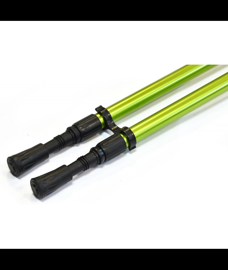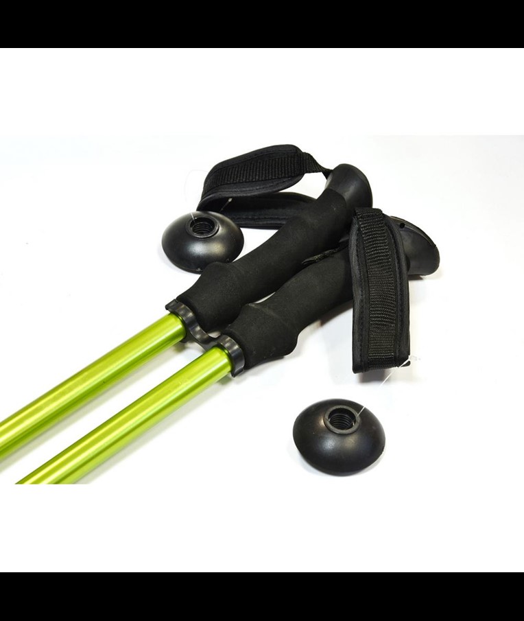 Berg hiking poles . 2- section adjustable metal Berg hiking poles up to 135 cm long with antishock mechanism are designed for classic hikers. Ergonomically designed foam handles with rubberized finish have adjustable polyester palm straps. The tip of the poles is carbide, and there is also a rubber tip protection for walking on asphalt.