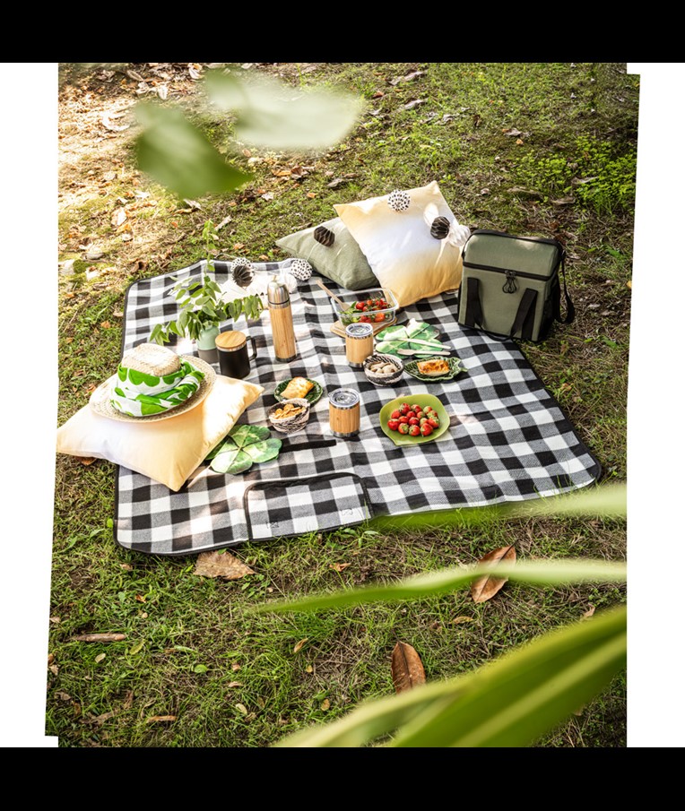 Fleece blanket (180 g/m²) lined in EPE with 600D flap. Includes handle for easy transport. Square patterned blanket. Ideal for outdoor activities. 1450 x 1200 mm | Folded: 330 x 230 mm | Flap: 300 x 200 mm