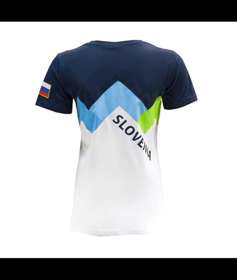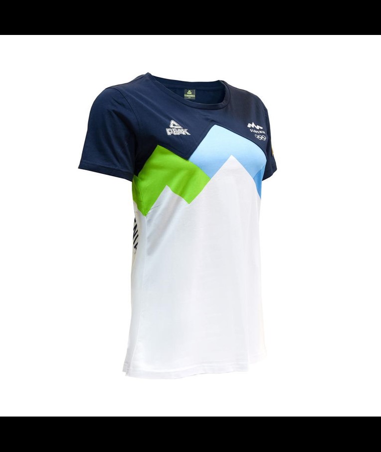 Women's short t-shirt Peak SLW-09 in white and blue, 95% cotton and 5% elastane