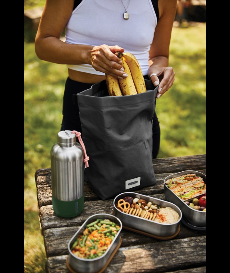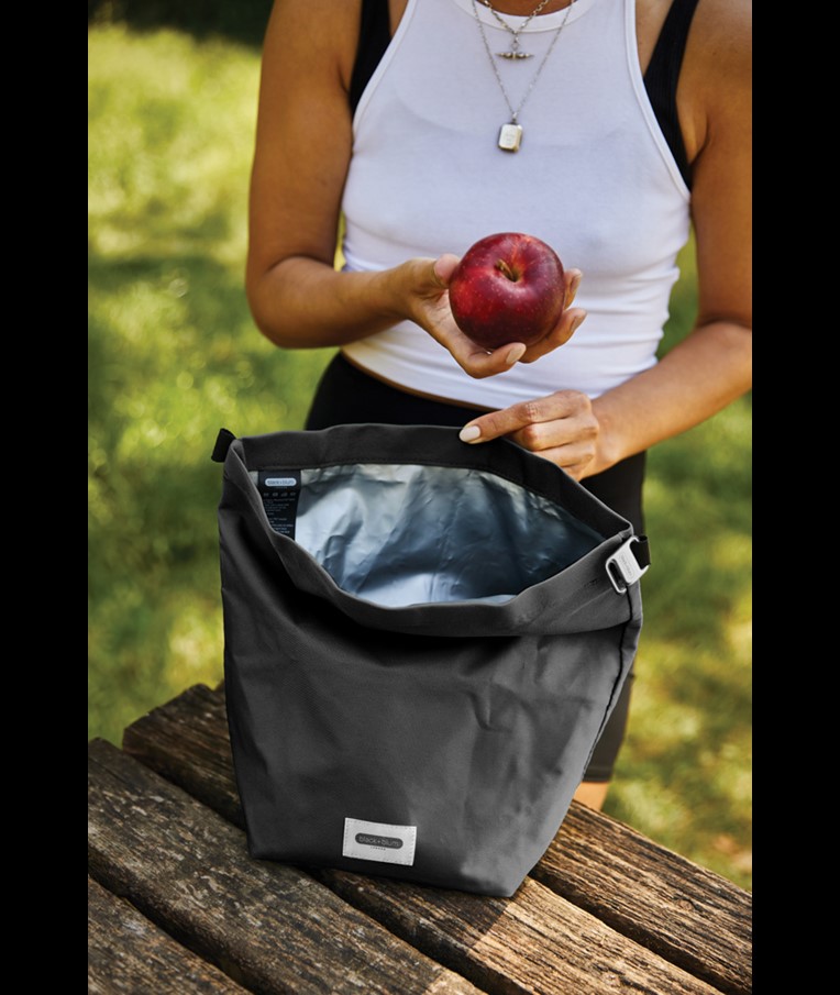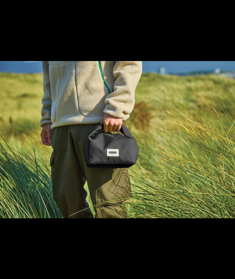 This 6.7L insulated lunch bag is made from recycled PET, such as used plastic bottles, and offers plenty of space for everything you need to get through the day—whether it’s a lunch box, water bottle, fruit, or snacks. It’s the ideal insulated lunch bag for both kids and adults, and it’s now available in four colours with matching tote bags. Inspired by the design of dry bags, the roll-top closure and welded lining make the bag 100% leak proof when stored upright. The insulated interior helps maintain the temperature of the contents, keeping everything nice and cool. The food-safe and water-repellent inner surface is easy to wipe clean, and the roll-top design makes it simple to carry, compress, or attach to another bag or even your bicycle handlebars.